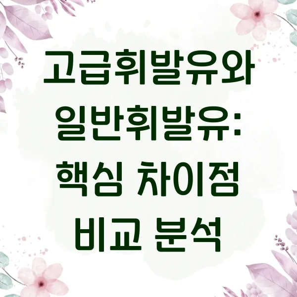 고급휘발유와 일반휘발유, 뭐가 다를까요? 옥탄가, 연비, 가격 차이부터 장단점, 최적의 선택까지! 궁금한 모든 것을 속 시원하게 파헤쳐 드립니다. 차종별 맞춤 휘발유 선택 가이드, 지금 바로 확인하세요! #고급휘발유 #일반휘발유 #옥탄가 #연비 #자동차 #연료 #가격비교 #꿀팁 #자동차관리